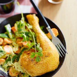 Faites chauffer l’huile d’olive dans la poêle et mettez les filets de poulet à dorer 5 minutes de chaque côté.