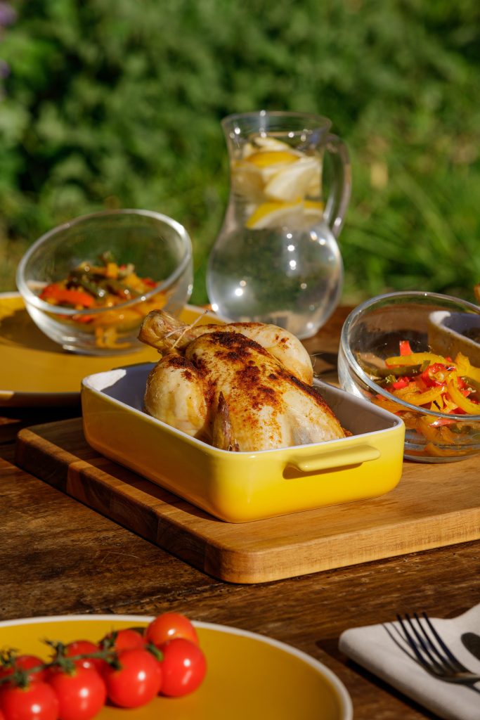 Sortez les coquelets du four et retirez les citrons. Les laisser reposer 5 min. Vous pouvez servir le jus de cuisson citronné dans une saucière après avoir retirer les résidus de graisse.