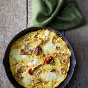 Ajoutez la poêlée de champignons à l’ail puis le poulet et les dés de tomme de brebis.