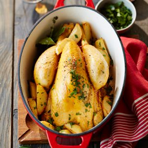 Placez la préparation au four pendant 45 min en arrosant régulièrement avec le jus de cuisson.