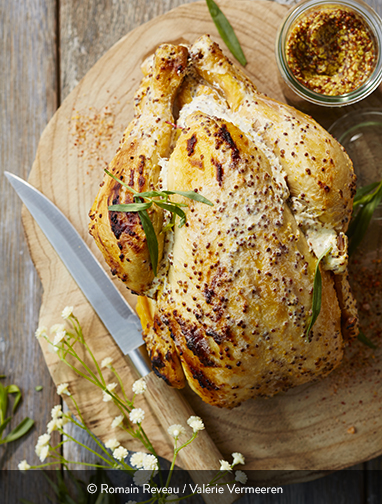 Poulet rôti fondant à la moutarde à l’ancienne et à l’estragon